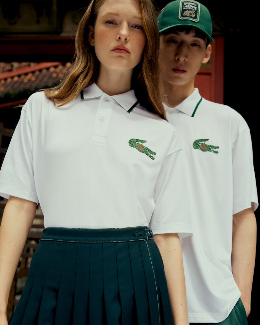 Lacoste taps into an east-meets-west energy with their latest capsule collection, co-designed by Hong Kong-based label CLOT. The resulting pieces include a tennis polo that reimagines the Lacoste crocodile in porcelain-style etching, plus comfy tracksuits in a deep green that contrast superbly with the red accents.