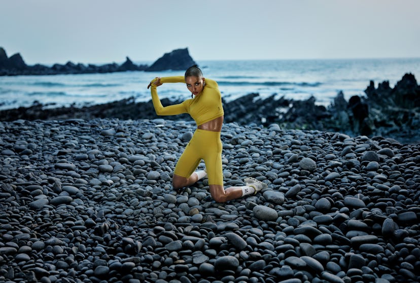 On announced FKA Twigs as a creative partner earlier this year, and her first-ever On campaign just released. Shot by her partner Jordan Hemingway, the pictures see Twigs stretching, training, and contorting on the beach in On’s fall collection, which features the new sickly yellow Gecko color. Twigs will also participate and stage design an On performance in London on Sept. 16 titled “The Body Is Art,” which hopefully will include teasers from her upcoming album, Eusexua.