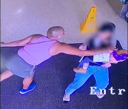 The incident unfolded on Tuesday afternoon when a mother holding her child at the Park Centre in East Victoria Park was approached by a woman in a pink singlet.